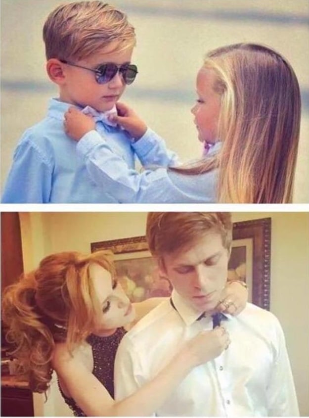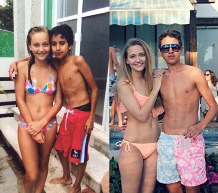 Cuando eran pequeños, él tenía que subirse al banco para alcanzarla. Pero el tiempo todo lo acomoda y ahora lucen increíbles juntos.