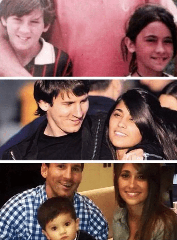 Lionel Messi y su esposa se conocieron cuando él tenía cinco años. Después la estrella del fútbol se mudó a España para jugar y durante sus visitas a Argentina comenzó su relación con Antonella Rocuzzo, con quien ahora tiene dos hijos.
