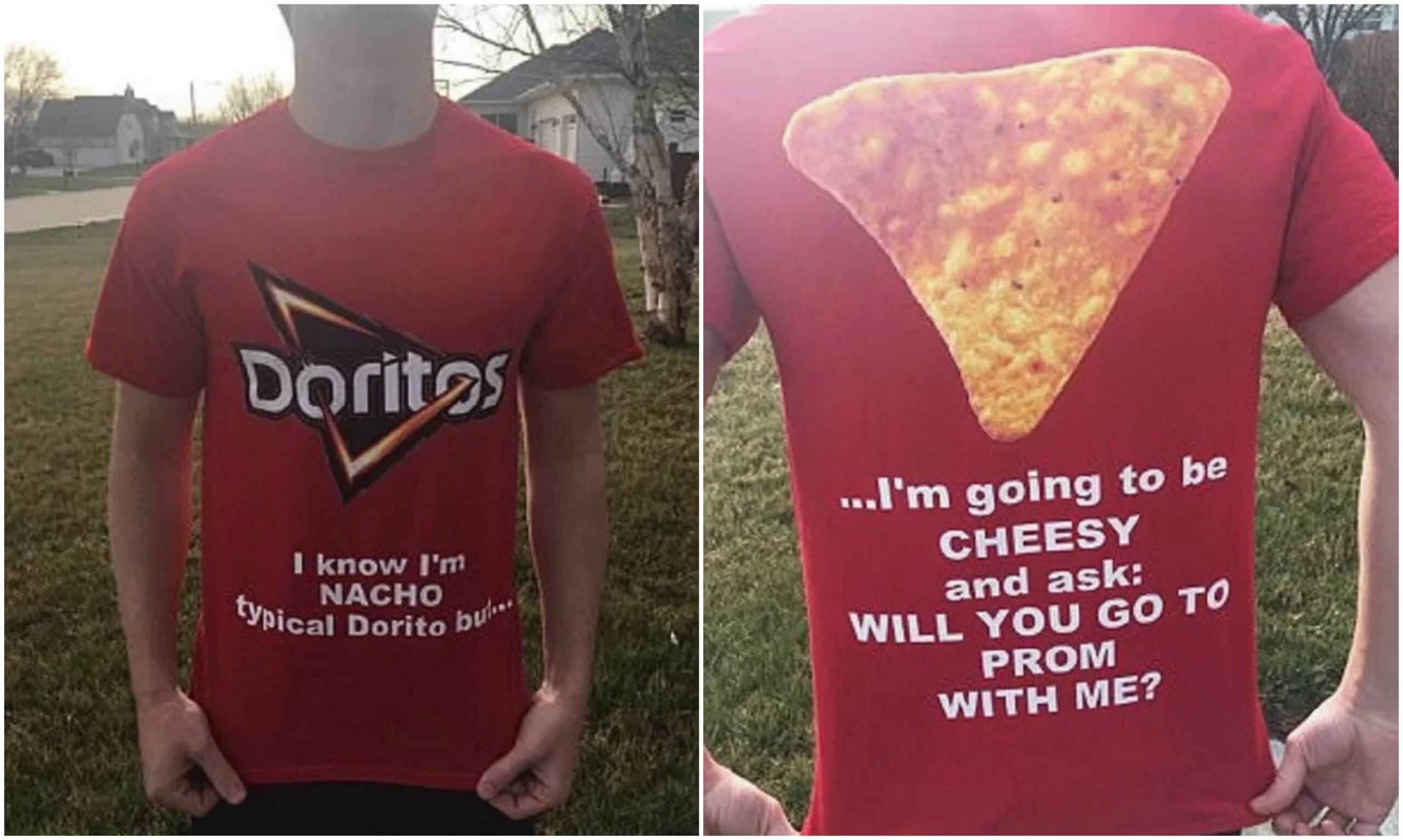 Sé que soy un NACHO, un Dorito típico, pero… Me pondré cursi y preguntaré: ¿Te gustaría ir al baile de graduación conmigo?